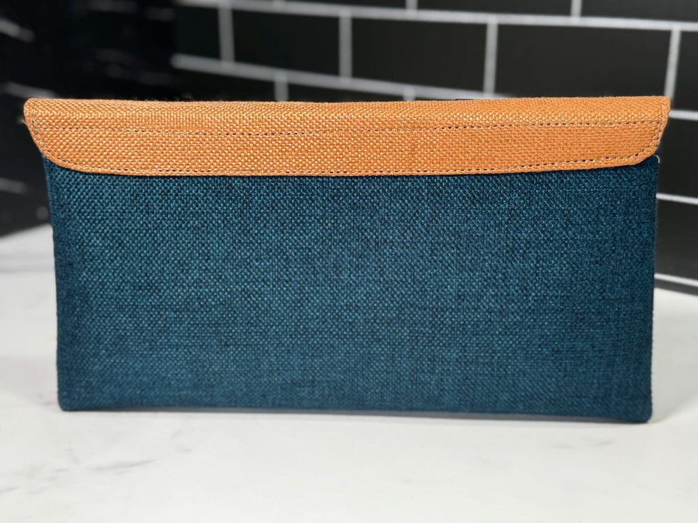 Bold and beautiful, this African handcrafted clutch features sisal jute in a vibrant blue & gold shade, adorned with colorful beaded detailing for a striking look. Sleek yet spacious, it's the perfect accent piece for evening events, casual outings, or festive celebrations. Embrace the fusion of tradition and modern style with this unique accessory!