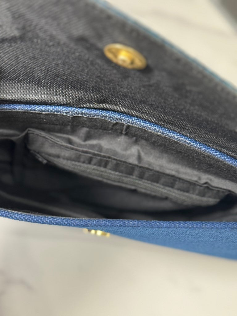 Bold and beautiful, this African handcrafted clutch features sisal jute in two vibrant blue shades, adorned with colorful beaded detailing for a striking look. Sleek yet spacious, it's the perfect accent piece for evening events, casual outings, or festive celebrations. Embrace the fusion of tradition and modern style with this unique accessory!