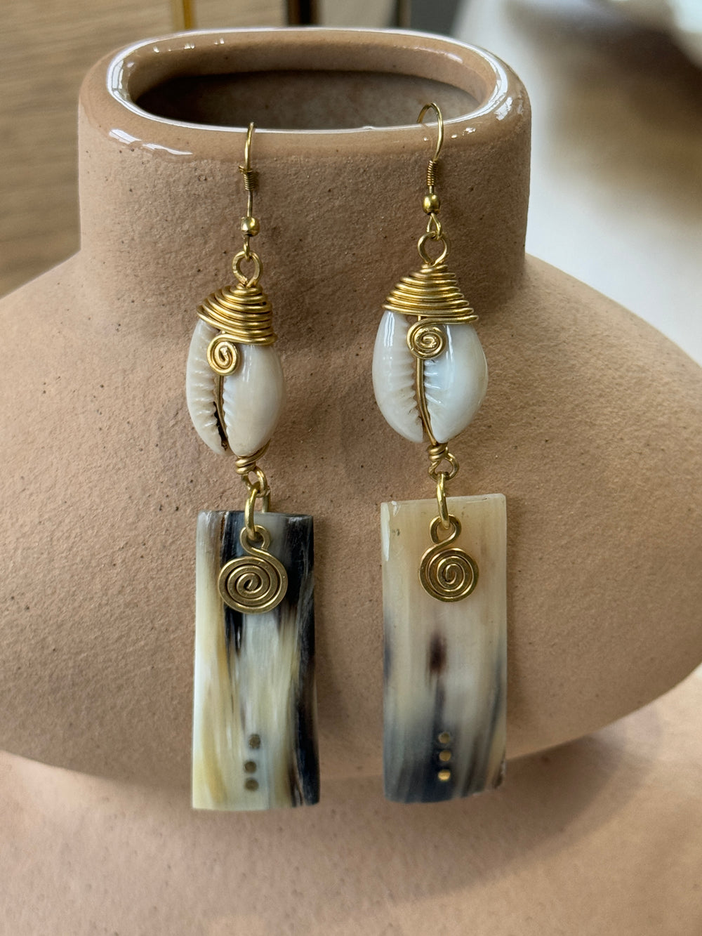 Our exquisite collection of stylish African earrings is handcrafted from bone and brass. Each piece reflects the rich cultural heritage and artistry of Africa, offering unique designs that blend traditional craftsmanship with contemporary elegance. Perfect for adding a statement to any outfit, these earrings are not just accessories—they're a celebration of heritage and style.